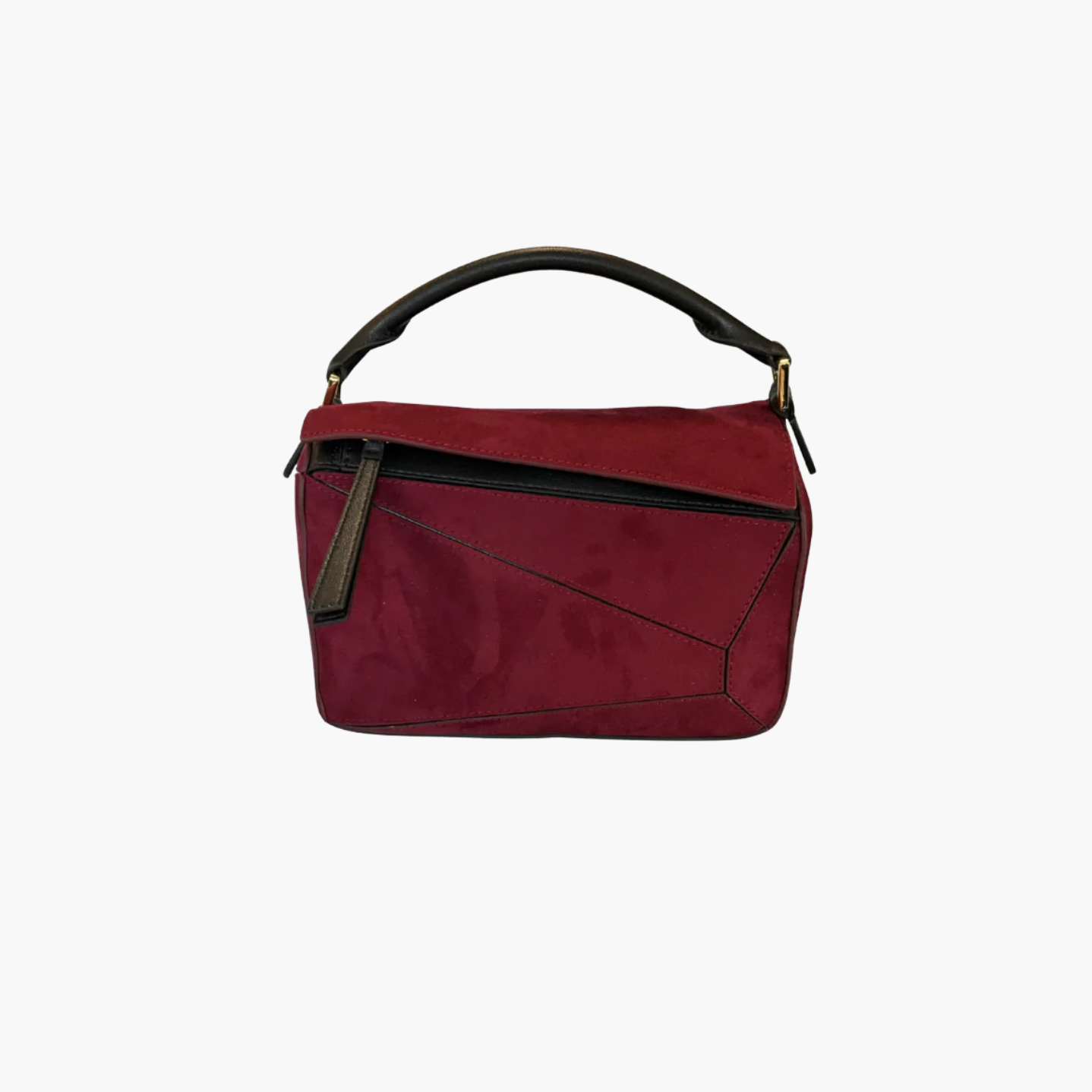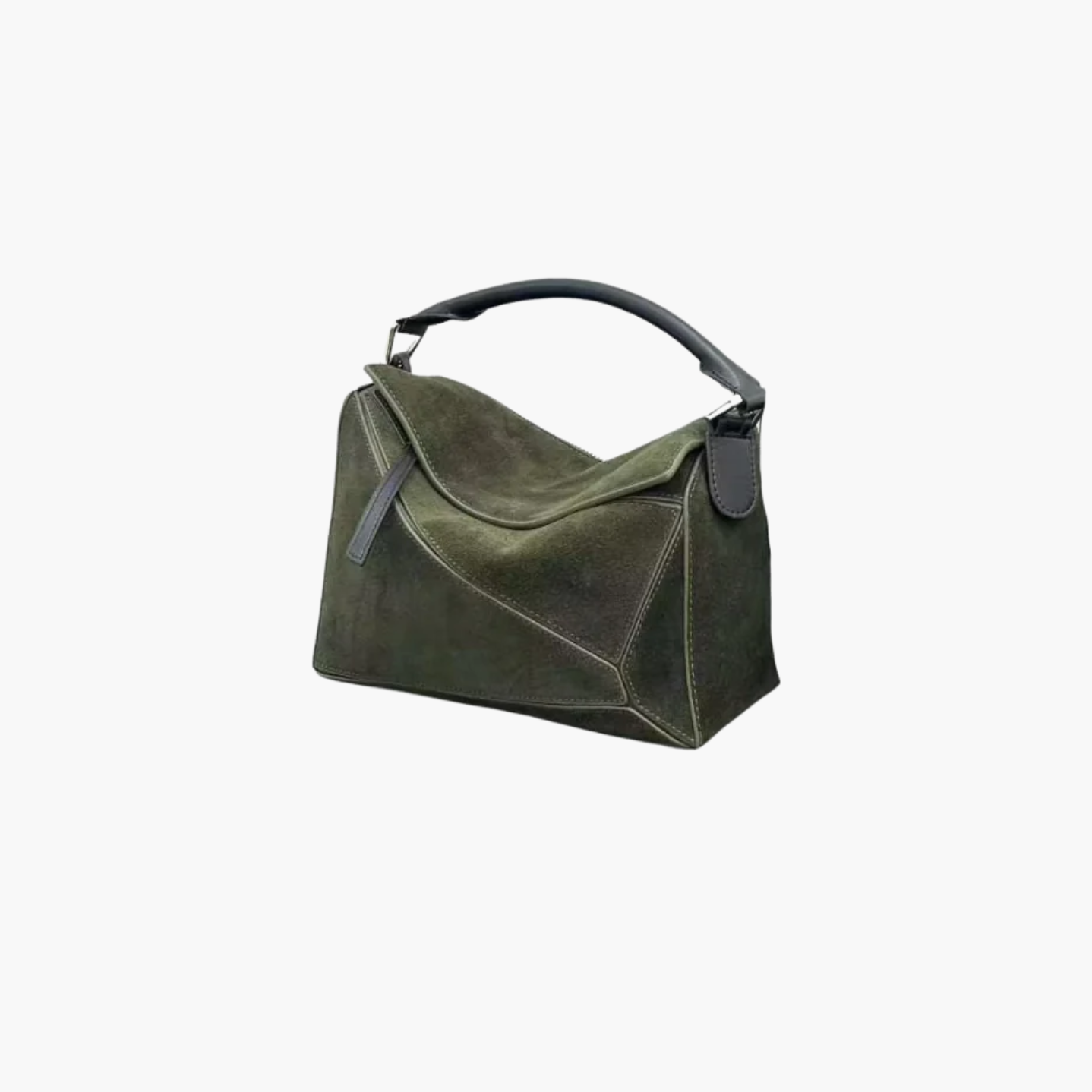 The Nina Bag stands out for its unique silhouette and soft suede texture.